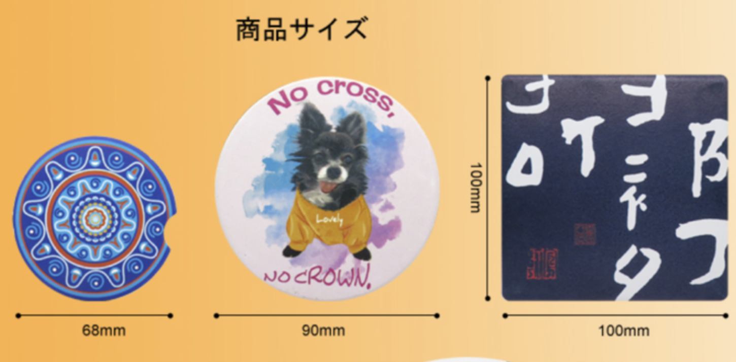 即収速乾のコースターです。先に言うと、インクジェットプリントで枠内に自由デザインなりますが、プリント部分は吸水力がなくなるので、考慮しつつデザイン作成が必要です。