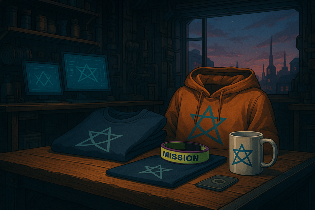 カルチャーをわかりやすく伝えるセット。Tシャツとパーカーは自分をインフルエンサーにするもの、ボンフィレットとステッカーは他者をインフルエンサーにするものです。