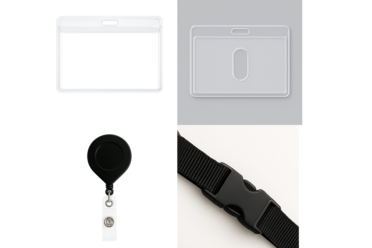 IDケース(ソフト/ハード)、伸縮リール、着脱バックル。